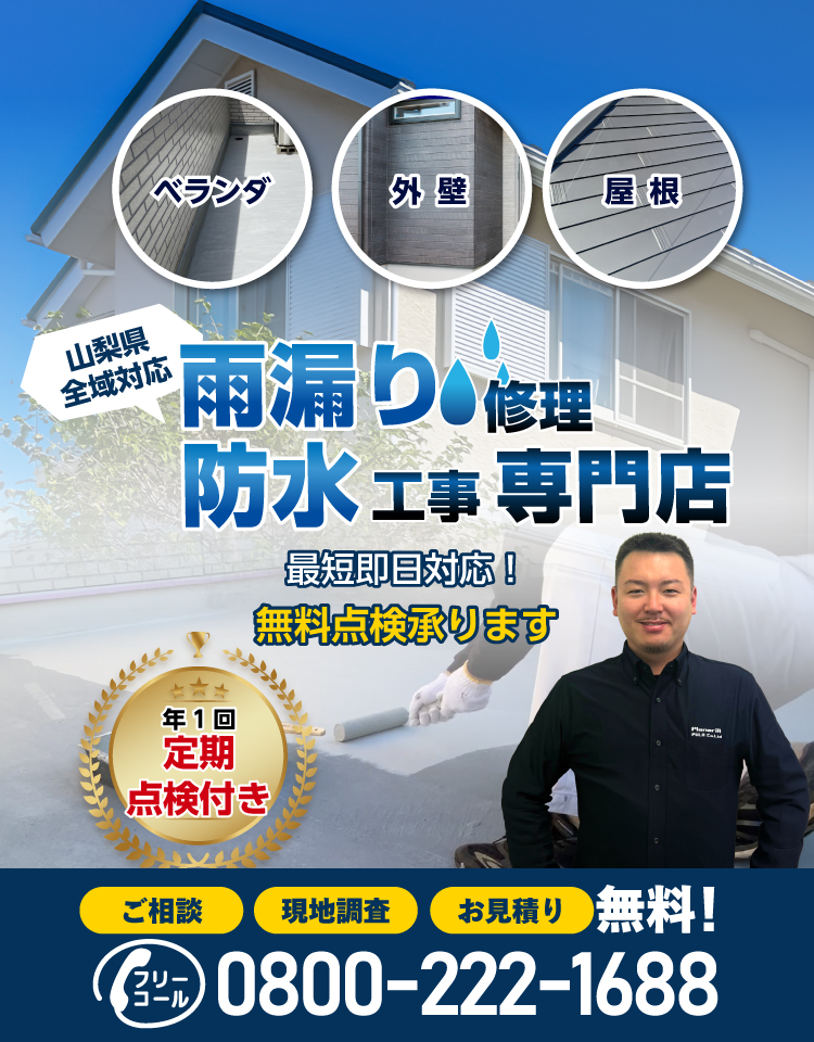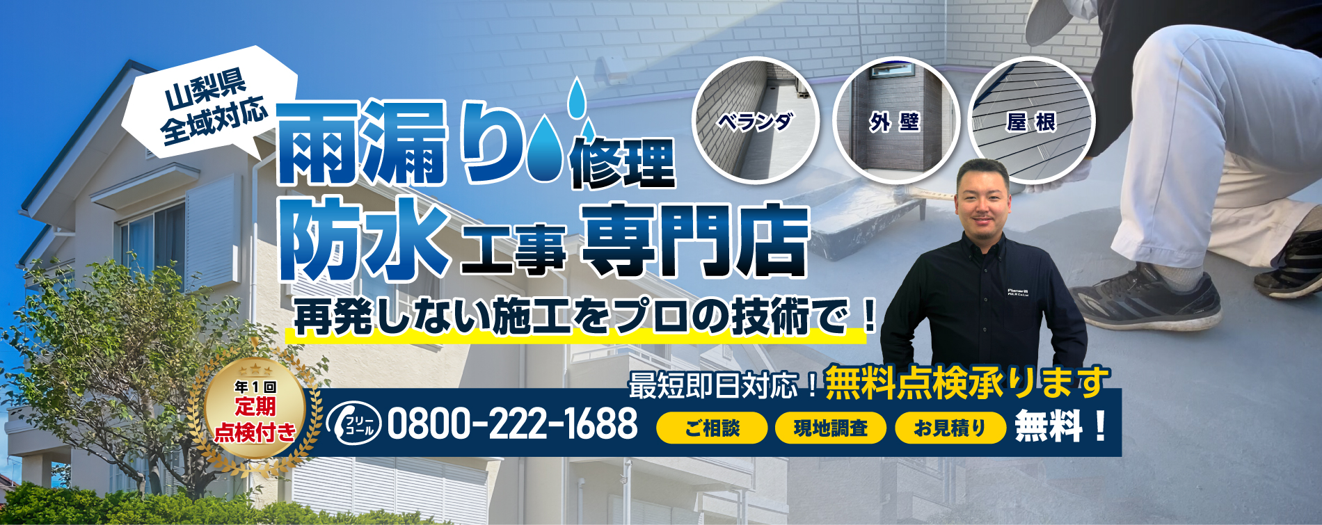 甲府市雨漏り修理センターでは、甲府市を拠点に、山梨県全域を対象エリアとして雨漏り修理・防水工事に対応しております。
