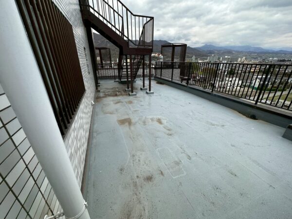甲府市にて屋上防水の劣化による雨漏り修理〈築35年マンションの防水改修工事〉